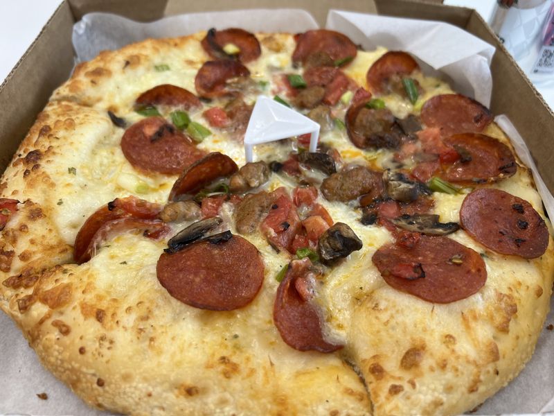 This is an interesting pizza for me! The crust reminds me a lot of a home-made dough my mom used to make when I was growing up, and the overall texture and flavor are great. It's simple, but refined. If you want a great cheese pizza with a flavorful, flaky crust, give this a try!